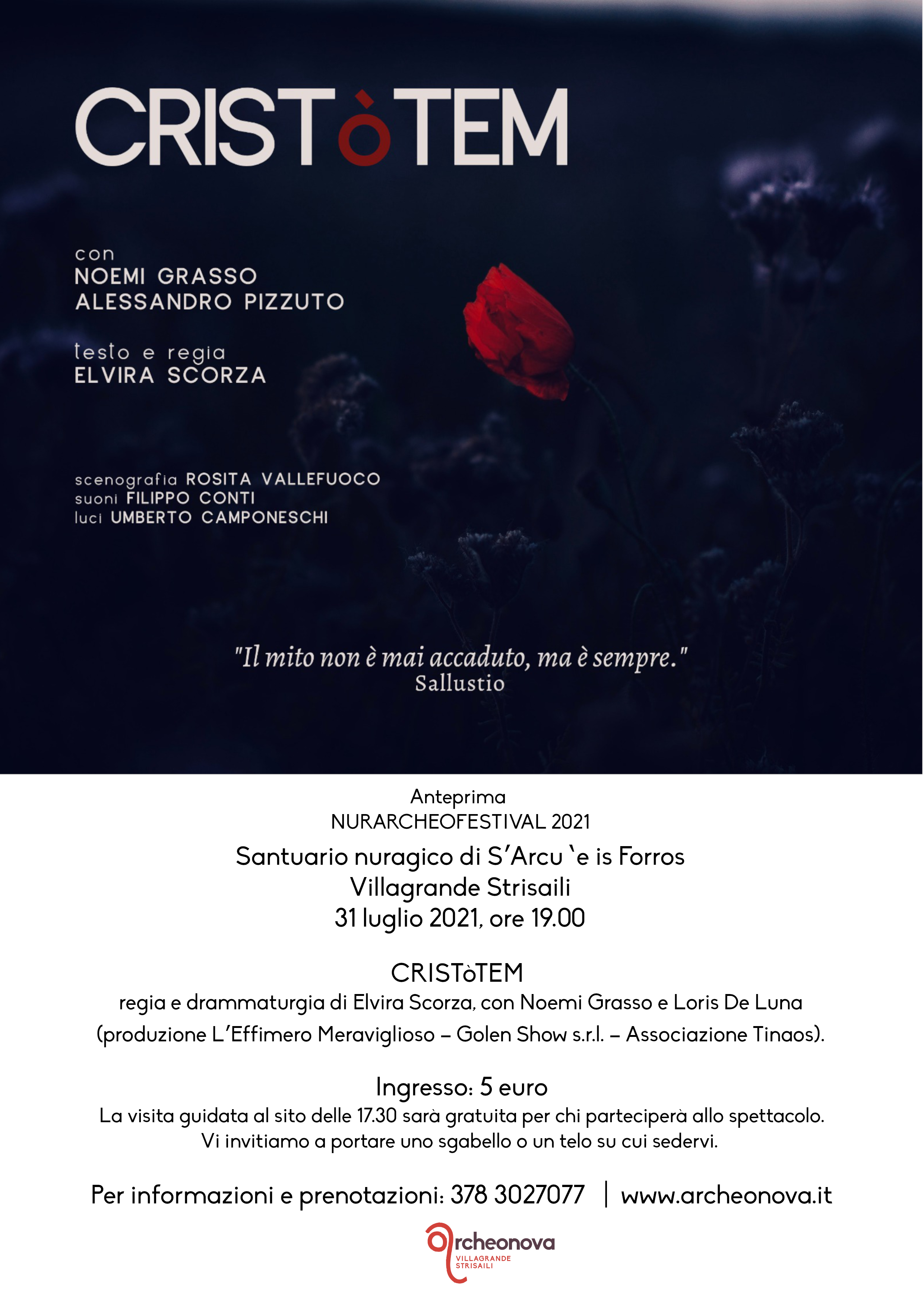 Aspettando il NurArcheoFestival 2021, inauguriamo la stagione degli eventi ai siti archeologici del Comune di Villagrande Strisaili con una inattesa e gradita anteprima teatrale: ad illuminarsi saranno i templi di S’Arcu ‘e is Forros, per una sera scena senza tempo per l’opera CRISTòTEM, prova intensa di drammaturgia contemporanea.