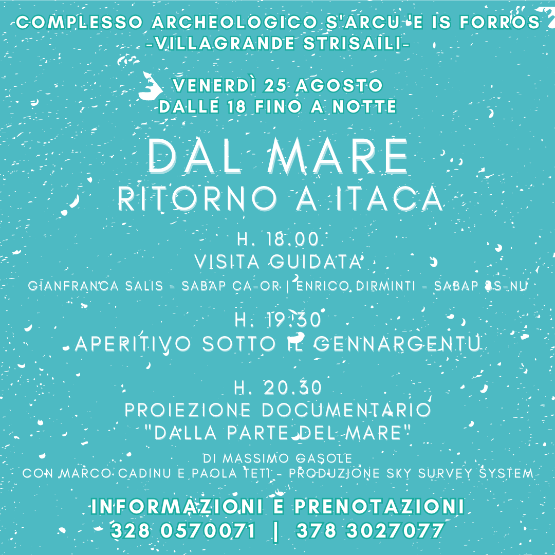 Venerdì 25 agosto al santuario nuragico di S’Arcu ‘e is Forros, grazie alla collaborazione tra l’Associazione Culturale Itzokor di Cagliari e Archeonova, ospiteremo la proiezione di “Dalla parte del mare”, il nuovo documentario diretto dal filmmaker cagliaritano Massimo Gasole, scritto in collaborazione con Marco Cadinu.