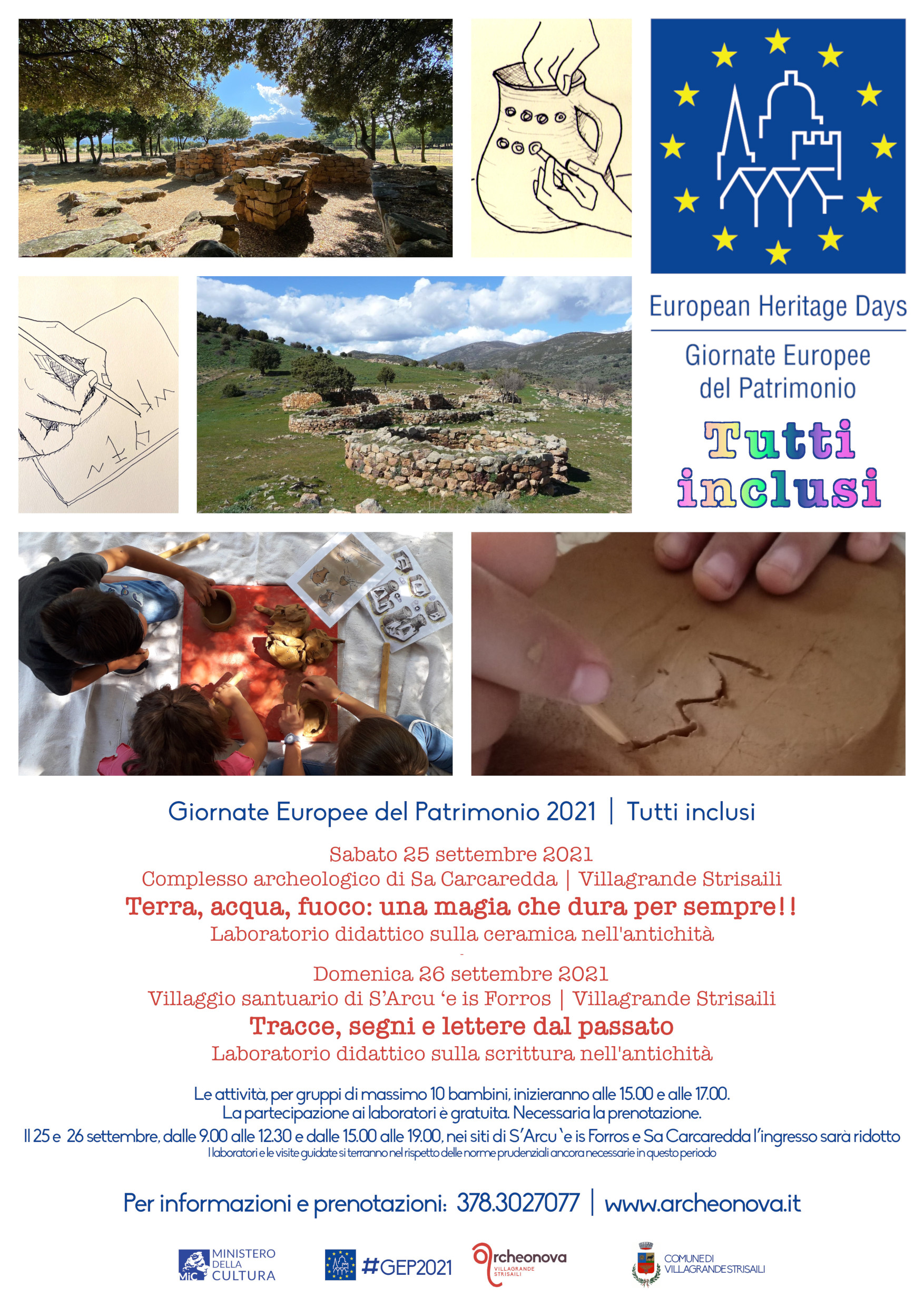 Arriva anche quest’anno l’atteso appuntamento con le Giornate Europee del Patrimonio, promosse dal 1991 dal Consiglio d’Europa e dalla Commissione Europea e coordinate dalle Direzioni regionali dei Musei. Sabato 25 e domenica 26 settembre 2021 i siti di Sa Carcaredda e S’Arcu ‘e is Forros ospiteranno laboratori didattici rivolti ai bambini e alle famiglie che avranno come tema la ceramica e la scrittura nell’antichità.
