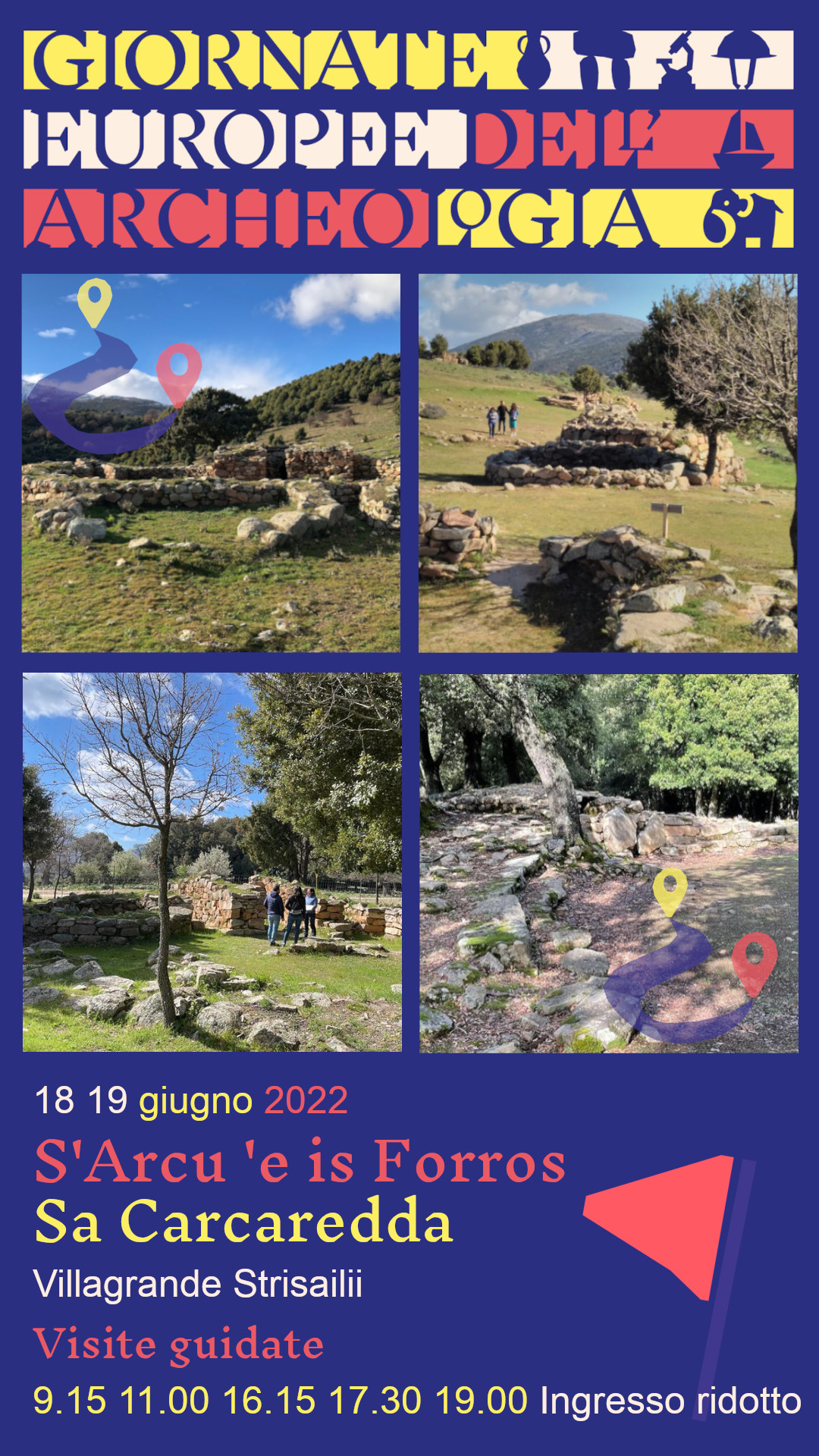 In questa occasione, il 18 e 19 giugno, i siti di S’Arcu e is Forros e Sa Carcaredda saranno aperti al pubblico, con la possibilità di ingresso ridotto. Immersi nel paesaggio montuoso ai piedi del Gennargentu, vi racconteremo la straordinaria storia della Sardegna nuragica. Con la visita guidata vi accompagneremo in un viaggio lungo tremila anni all’ombra dei templi a megaron del villaggio di S’Arcu ‘e is Forros, il più importante centro metallurgico nuragico dove le officine fusorie e le strutture sacre disegnavano gli spazi del grande santuario. A breve distanza, immerso in un fitto bosco di lecci, il complesso nuragico di Sa Carcaredda a Villagrande Strisaili ospita diverse tombe di giganti e un tempietto circolare che restituiscono gli echi della profonda religiosità delle genti nuragiche.