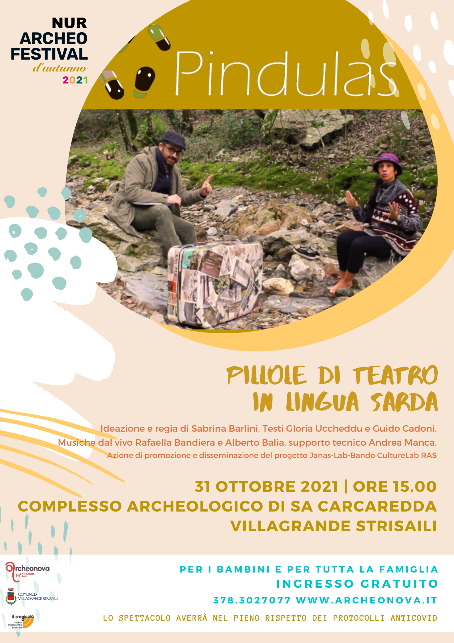 Pindulas. Pillole di teatro il Lingua Sarda è ideato e diretto da Sabrina Barlini, con testi Gloria Uccheddu e Guido Cadoni. Le musiche dal vivo sono di Rafaella Bandiera e Alberto Balia con il supporto tecnico Andrea Manca. L'evento costituisce azione di promozione e disseminazione del progetto Janas-Lab-Bando CultureLab RAS - Regione Autonoma della Sardegna.