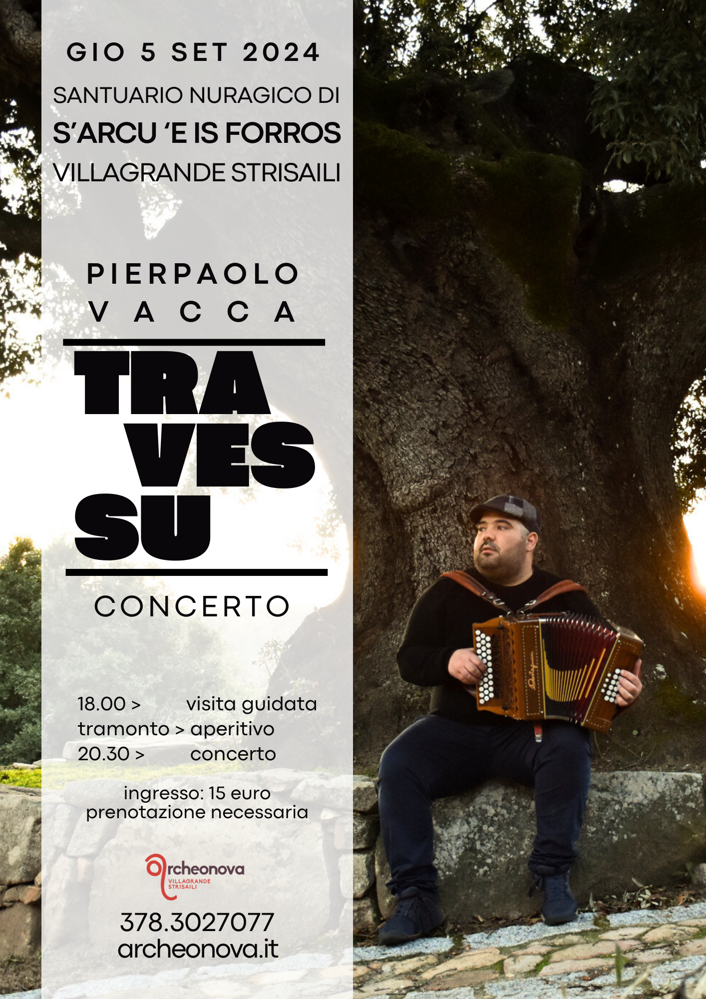 Giovedì 5 settembre, nell’atmosfera unica del santuario nuragico di S’Arcu ‘e is Forros, Pierpaolo Vacca presenterà il suo album di esordio “Travessu”, uscito a Gennaio 2024 per la Tuk Music.