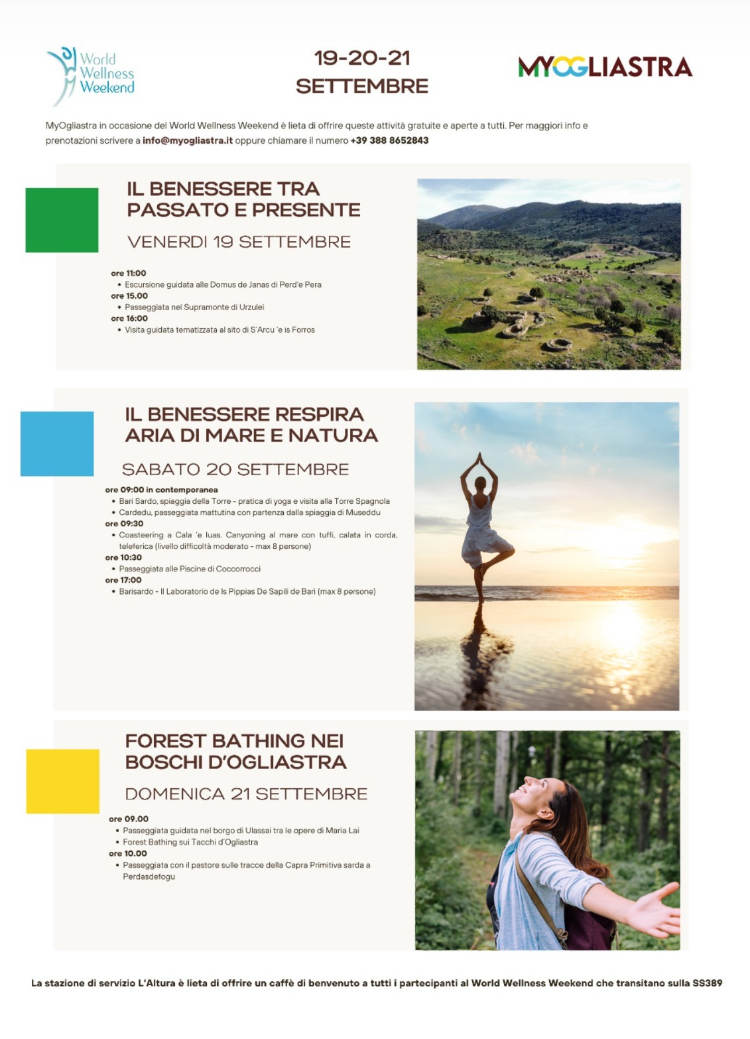 Il World Wellness Weekend, che si terrà anche nel nostro territorio dal 19 al 21 settermbre, è una celebrazione planetaria che consente alle persone di sperimentare attività dedicate al benessere: Riposo, Nutrizione, Vitalità, Serenità e Solidarietà. Un fine settimana con tanti eventi che avranno come scenario anche i paesaggi naturali dell’Ogliastra.
